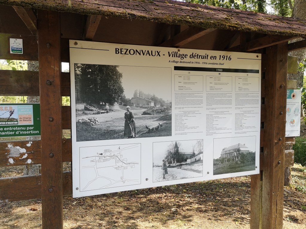 Ik ben terechtgekomen in Bezonvaux, althans de restanten ervan. Het dorp werd door Duitse beschietingen in 1916 van de kaart geveegd. Alleen het kleine kerkje werd in 1932 ter herinnering herbouwd.