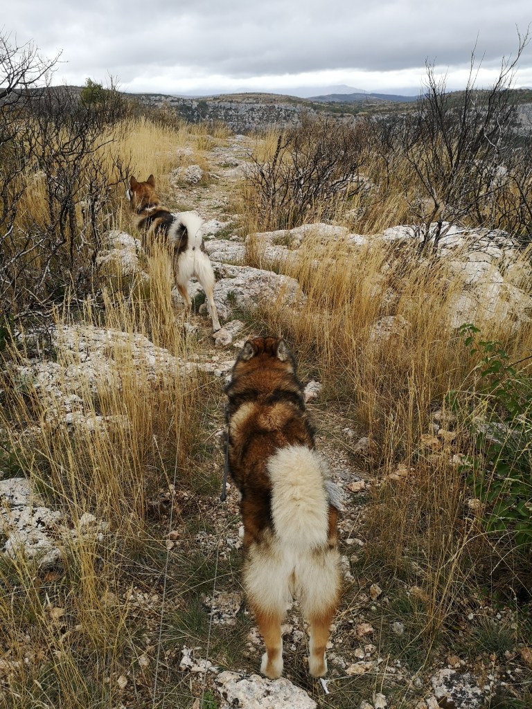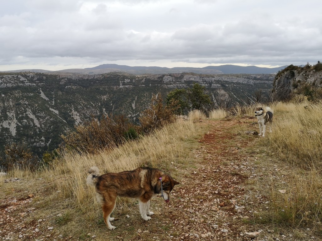 We lopen om acht uur ’s avonds een laatste avondrondje. Het is vreemd om in het halfdonker zo alleen over de Navacelles te lopen. Het voelt net zo desolaat aan, als het gebied zelf. Mijn natte kleding leg ik over de voorstoel te drogen, en ik zet het kacheltje op hoog aan. ‘Morgen weer verder’, denk ik, ‘nu even geen enge weggetjes meer’.