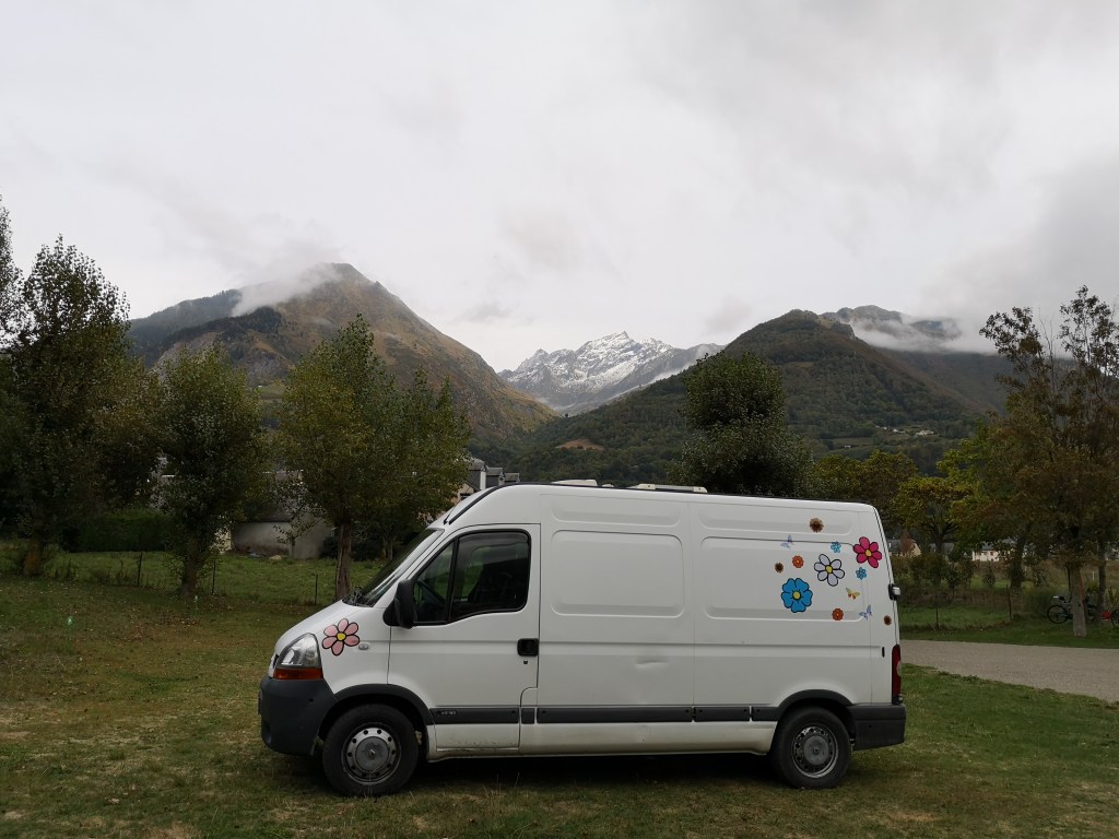 Langzaam word ik wakker van het zacht ruisende geluid van het stromende riviertje, dat naast de camping loopt. Ik zie donkergrijze bewolking door het dakraampje van de bus. Ik klim uit bed (is letterlijk klimmen op 110cm hoogte), en rijd de bus een paar meter vooruit, zodat het zonnepaneeltje wat beter oplaadt.
