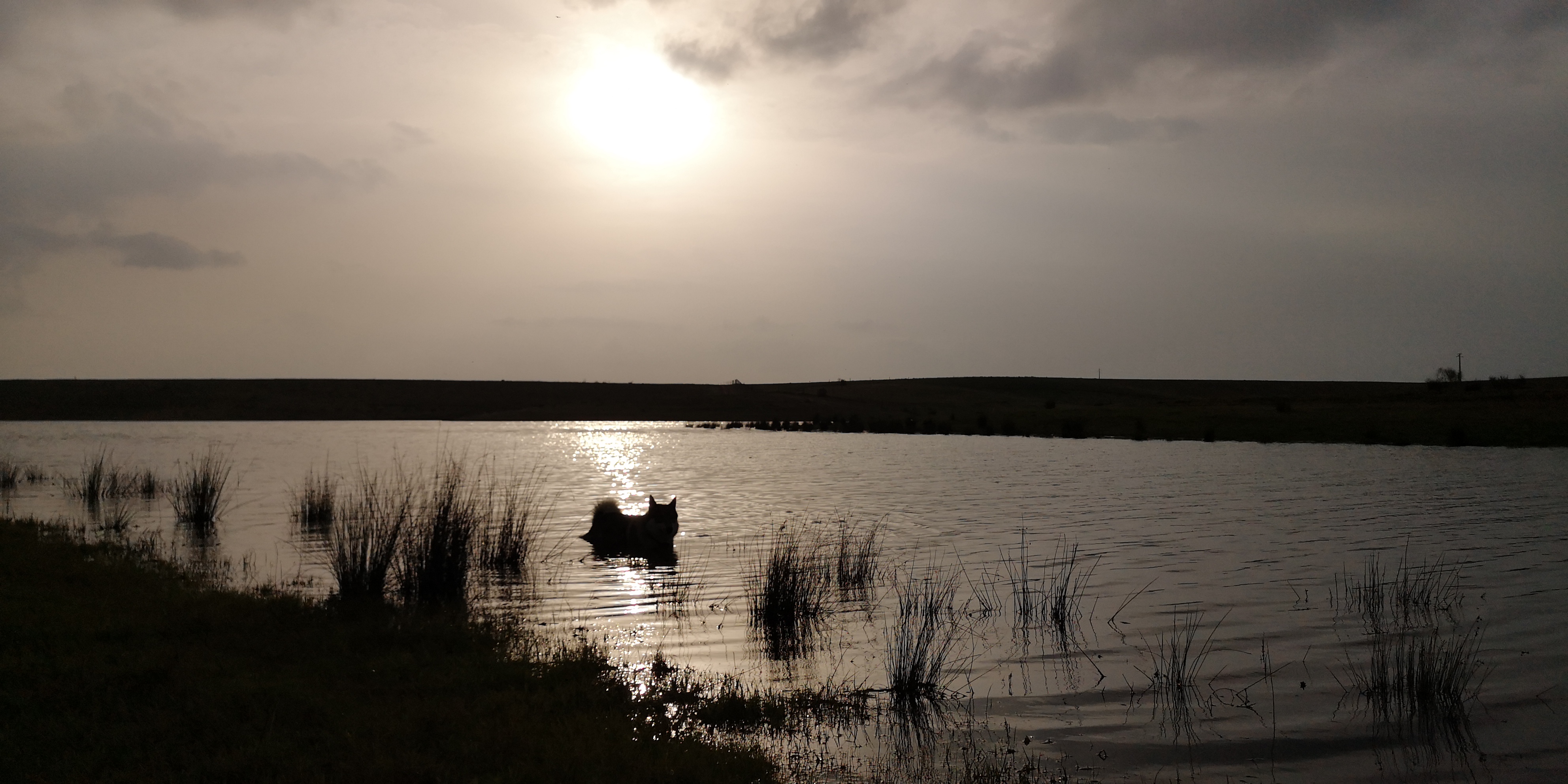 Het water kabbelt rustig aan de waterkant, en de roep van verschillende watervogels schalt over het meer.