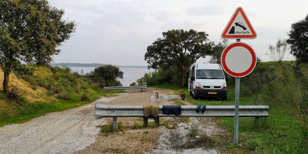 We rijden via kleine binnenweggetjes het natuurpark Vale do Guadiana uit, en ik vind na een paar uur rijden een plekje langs het water in de buurt van Luz, niet ver van de Spaanse grens af.