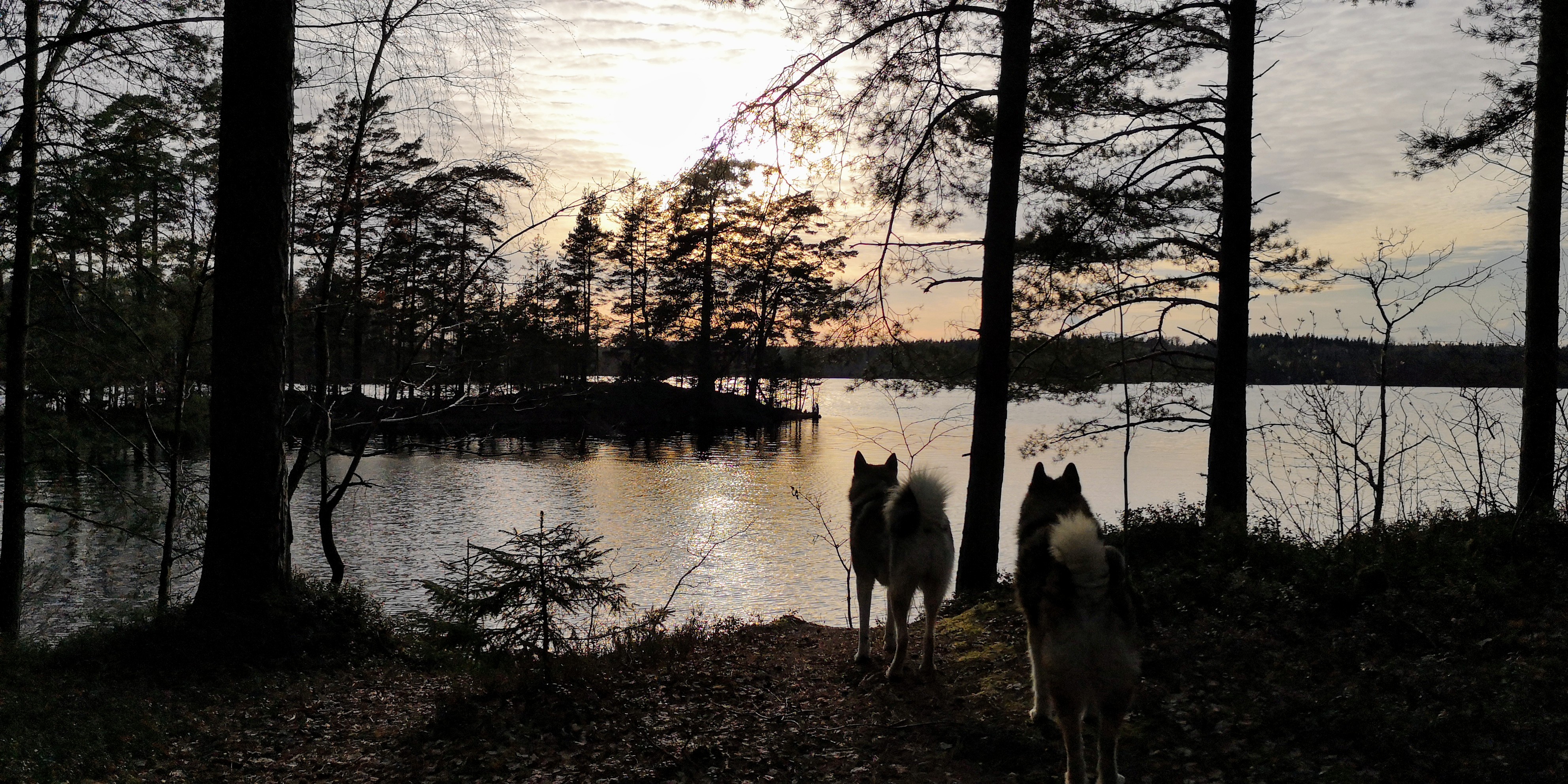 Op deze prachtige landtong horen we het zachte kabbelen van het water aan de stenen oevers. De zon schittert op het water en zakt steeds verder naar beneden. Een mooi rustgevend plekje.