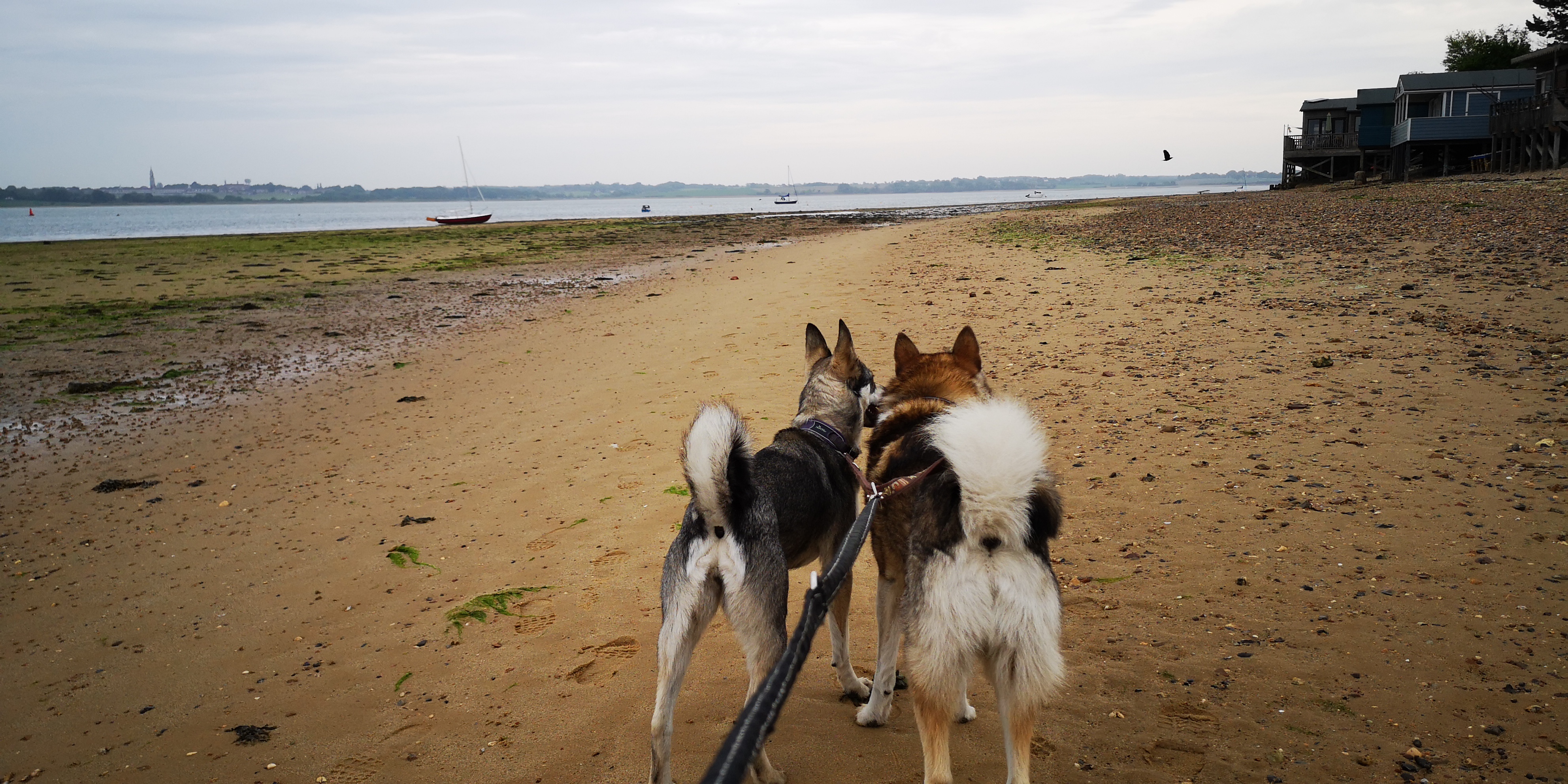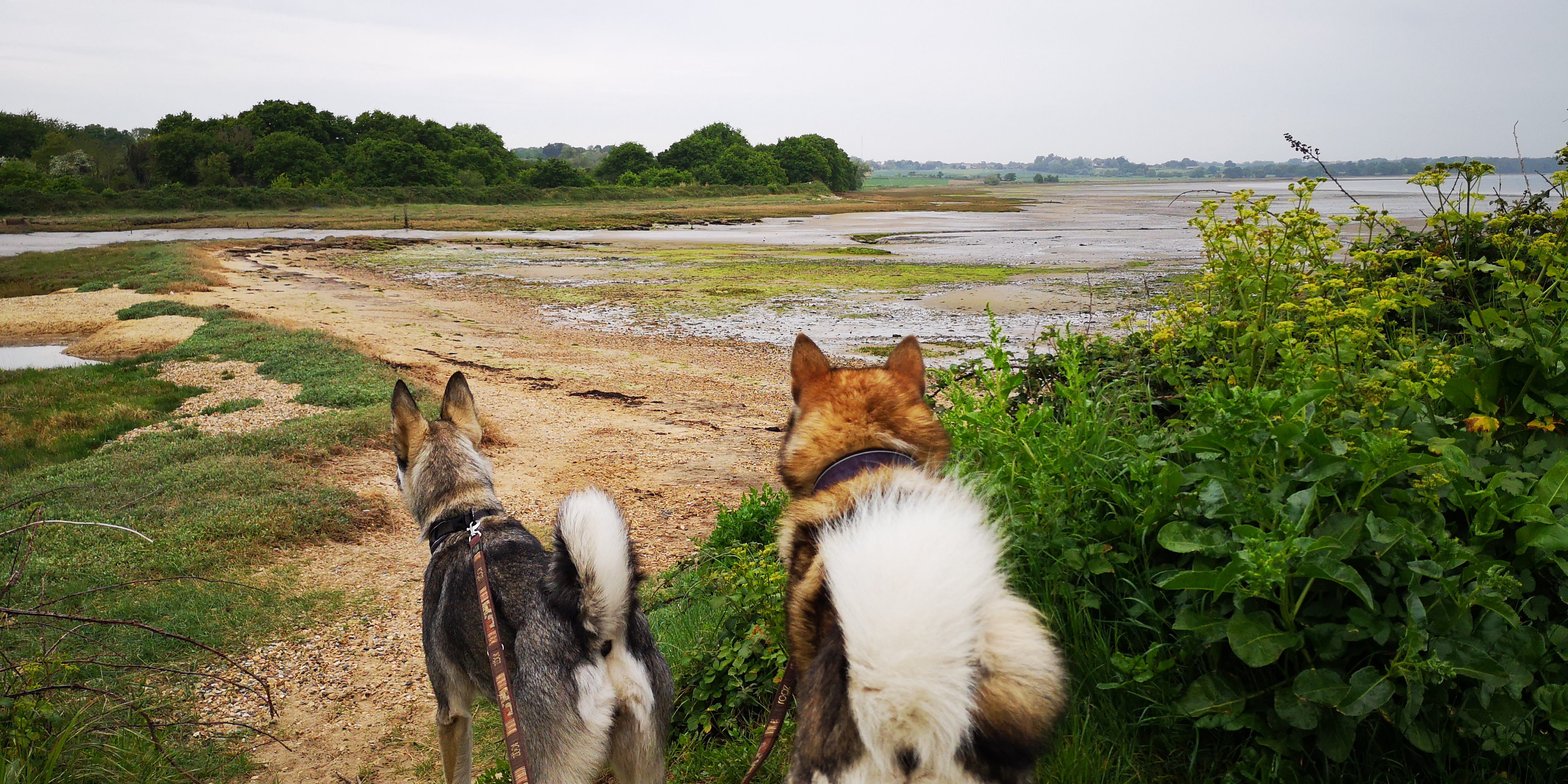 Ik maak samen met Mika en Moran een wandeling dwars door Wrabness Nature Reserve richting de Noordzeekust. Het is halverwege mei en alles staat in volle bloei. Aan weerskanten van de kleine bospaden groeit weelderig fluitenkruid tussen de lange grassen. Al snel zien we het blauw van de Noordzee. Ik vervolg het pad over zand en kiezelstenen. Kleine houten huizen, veelal gebouwd op palen, zijn tegen de zanderige klifwand aangebouwd. Er tegenover liggen talloze bootjes in het water. Moran rent hard door het opspetterende water, terwijl Mika liever de kant van de huizen inspecteert. Ik volg een deel van het kustpad en loop daarna via een klein gehuchtje weer terug naar de bus.