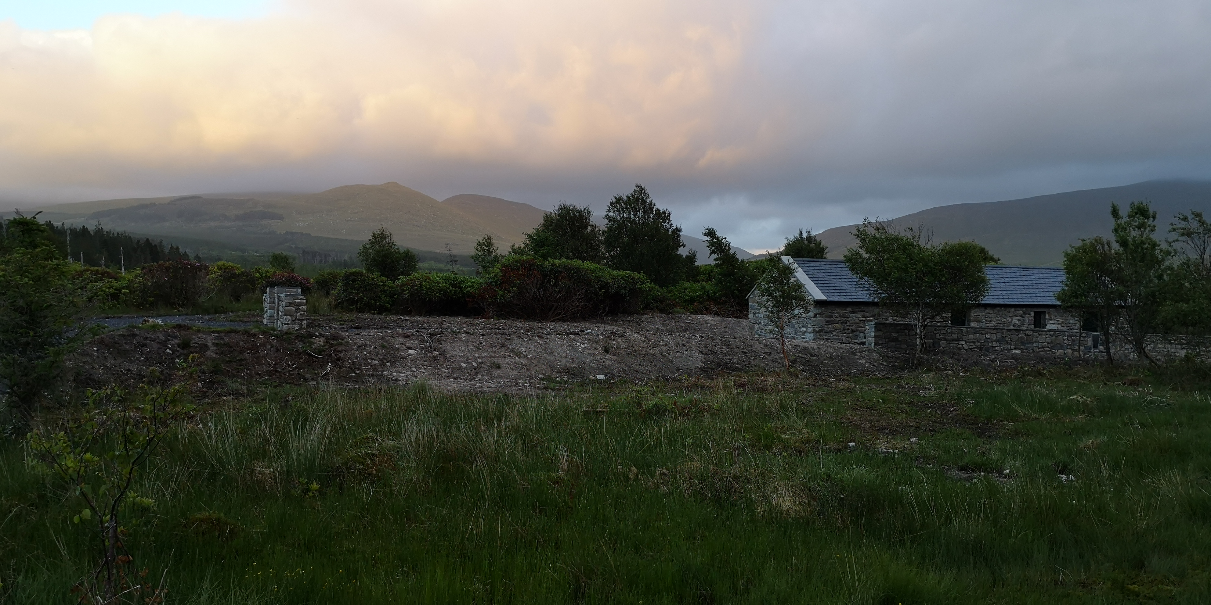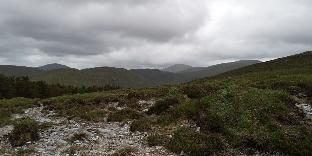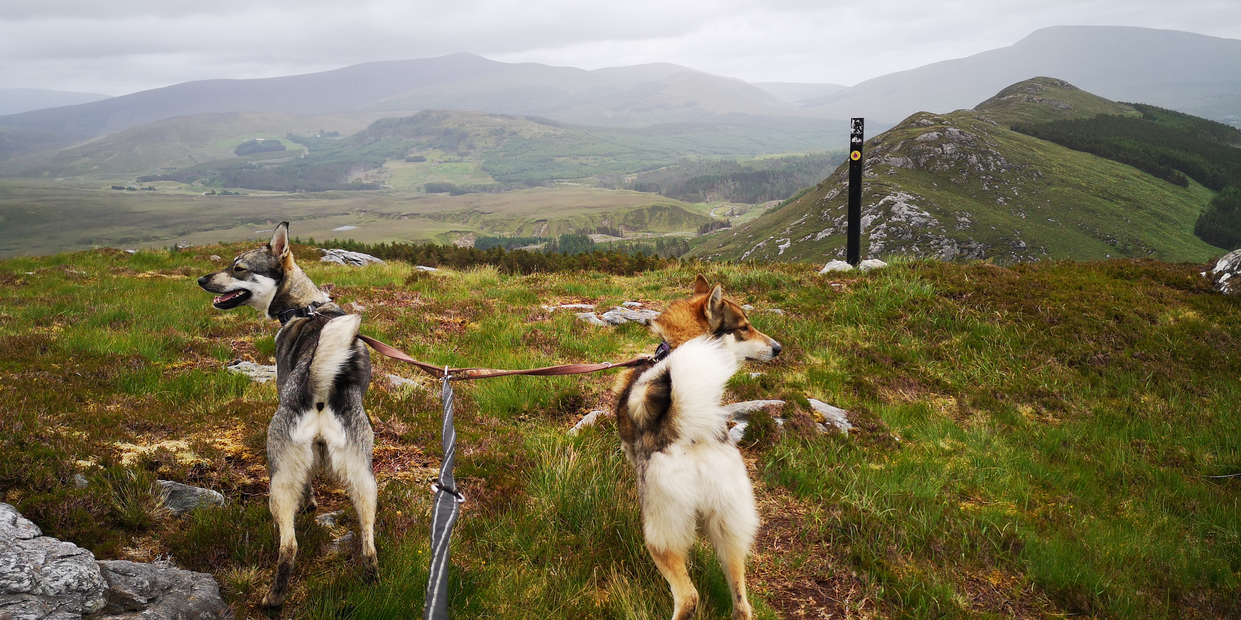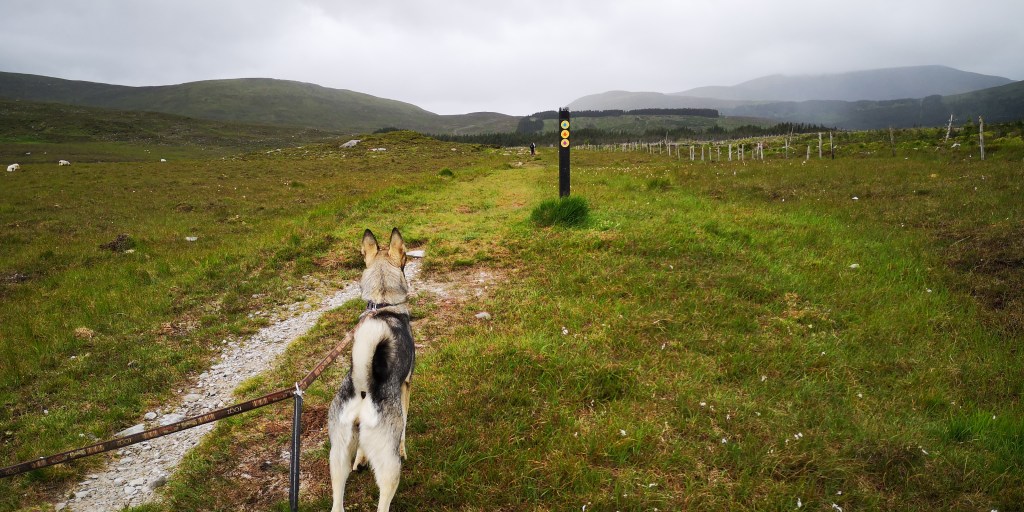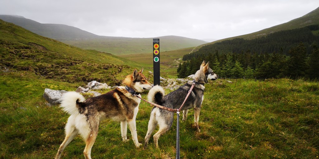We lopen over een modderig pad, dat af en toe nauwelijks zichtbaar is. We zakken weg in de diepe veengrond, en ik voel de kou van het water alweer binnendringen in mijn schoenen. Soms regent het even lichtjes, maar daarna komt de zon weer tevoorschijn en verlicht de bergen om ons heen. We lopen in de wildernis van Wild Nephin, en het voelt alsof we ver weg van de bewoonde wereld zijn. Dat is eigenlijk ook zo. De bus staat geparkeerd op een klein parkeerplaatsje bij waar de Letterkeen Loop Trail Head begint. Er zijn drie gemarkeerde routes, en wij hebben voor de paarse gekozen, die dwars over de top van de Letterkeen loopt. Vanaf daar hebben we prachtig zicht op de Nephin Beg Mountains tegenover ons. De bergen lijken tot in het oneindige door te lopen. Verder is er niks: geen mensen, geen huizen, alleen maar wildernis: bergen, kliffen, venen en rivier valleien. Het liefst zou ik nog willen doorlopen, maar we hebben er alweer twee uur opzitten, en het kost ons nog minstens een uur om terug bij de bus te komen. Mika en Moran kijken nog steeds uit over de bergen. Ook zij lijken altijd weer te genieten van het uitzicht. Hun poten en buik zitten onder de modder. Ik zie dat ze magerder worden. De ribben zijn inmiddels zichtbaar bij Moran. Daarachter haar gespierde dijen en billetjes. We maken dagelijks flinke wandelingen en klimpartijen over de bergen. Ik ben zelf ook afgevallen, maar dat is niet zo erg. Die tien kilo van mijn overwintertijd in het bakhuisje kan er prima af. Ik voer de honden flink wat bij de afgelopen weken, maar toch vallen ze af. De wind is koud bovenop de Letterkeen. ‘Kom jongens, we gaan weer.’ Voorzichtig dalen we het steile gladde pad naar beneden af.