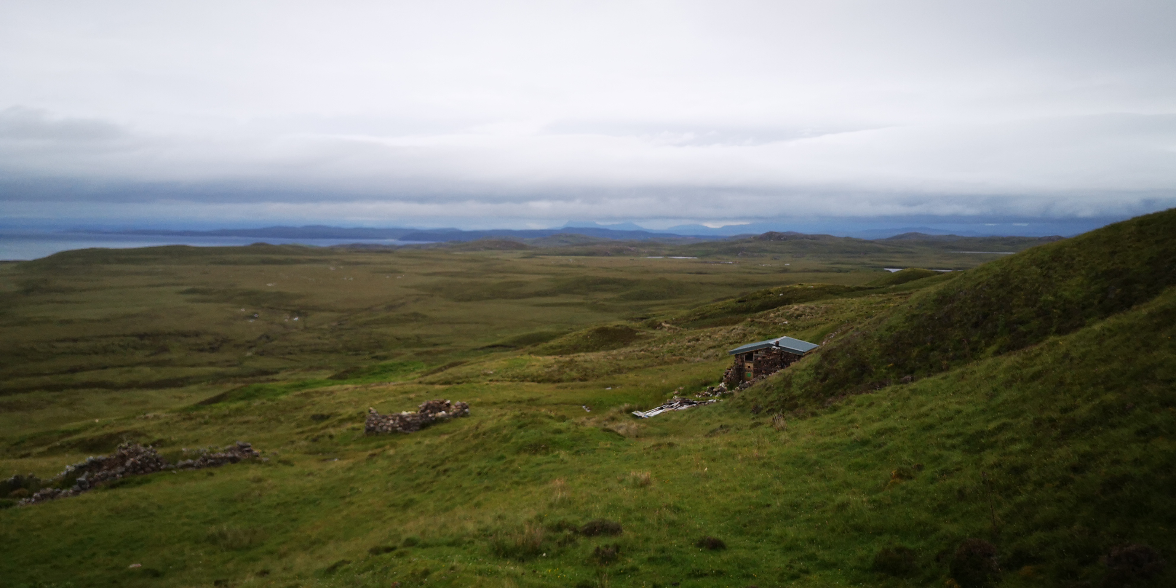 Tegen de heuvel ontdek ik een klein stenen huisje. Voorzichtig loop ik ernaartoe, want ik wil niemand storen. Het blijkt een hutje te zijn voor wandelaars om te kunnen overnachten. Het draagt de naam ‘Camstrolvaig Bothy’, en is voorzien van een houtkachel, slaapplaatsen, water, voedsel en wat keukenspullen. ‘Ik zou hier zo een paar dagen kunnen blijven,’ verzucht ik tegen de honden, die het zich al makkelijk hebben gemaakt op de stenen vensterbank voor het raam. Zo blijven we nog een tijdje zitten.