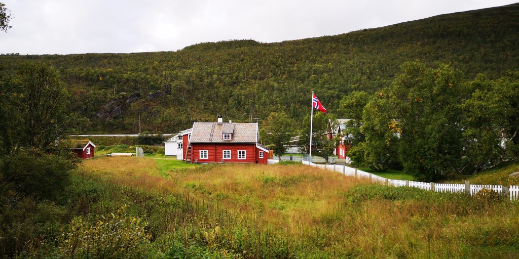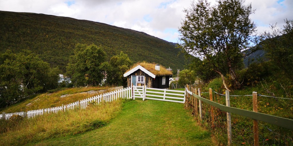 Na anderhalf uur lopen zien we het witte gebouw schuin tegenover het oude treinstation van Kongsvold. Daarnaast ligt de botanische tuin met een unieke verzameling van arctische bloemen en planten. Het park ligt niet ver van de poolcirkel, en dat zorgt ervoor dat je hier unieke planten en diersoorten tegenkomt.