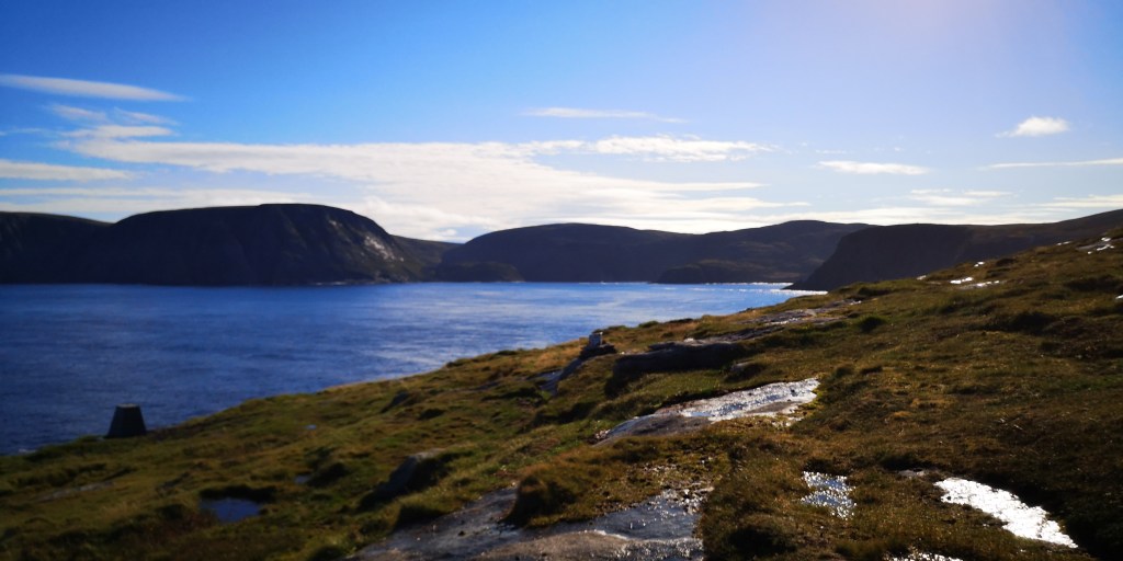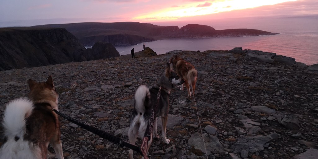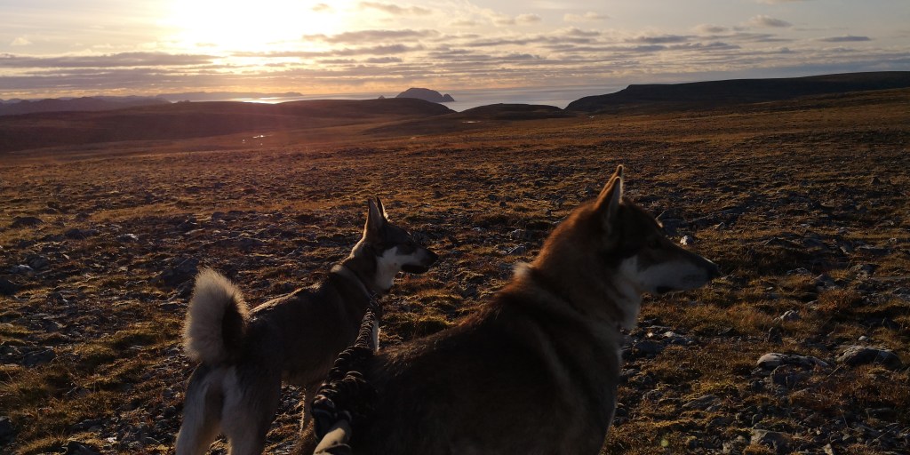 Aan het begin van de middag bereiken we een klein parkeerplaatsje dat Knivskjelodden Trail Parking heet. We zien alleen maar kale vlaktes met een hele hoop stenen om ons heen. ‘Nou, daar zijn we dan, op het bijna meest noordelijke puntje van Europa,’ zeg ik tegen de honden.