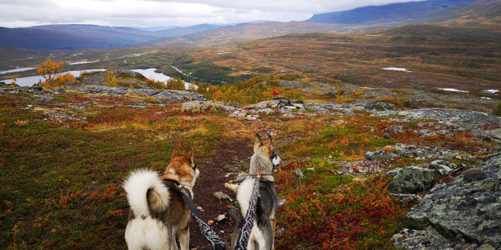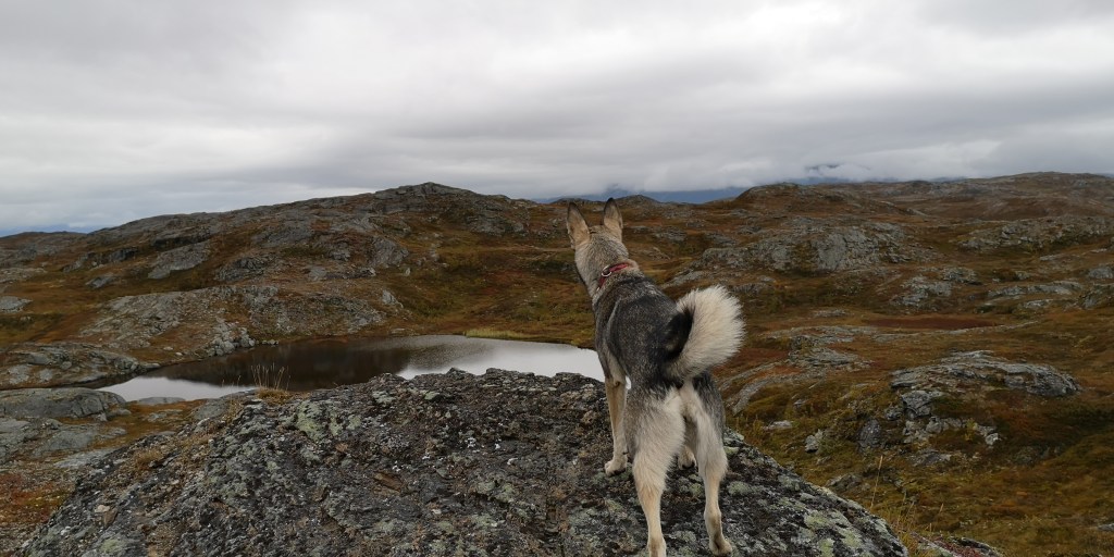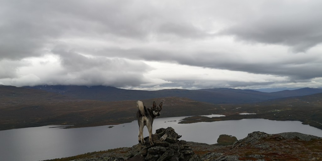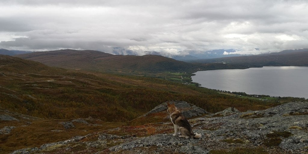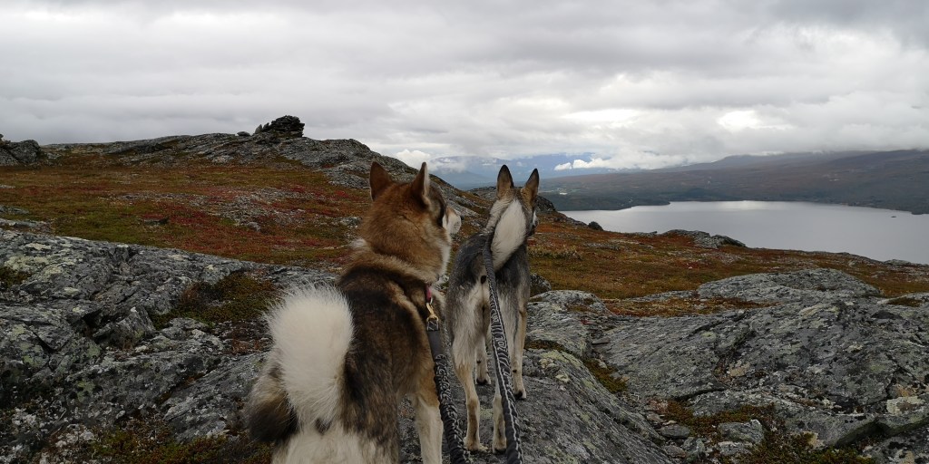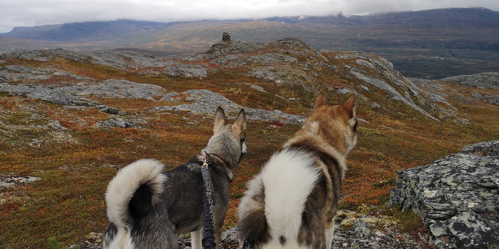 Ik sta samen met Mika en Moran aan de rand van het park, niet ver vanaf de Sami Shop Heia. Achter het bushokje vond ik bij toeval een route de berg op. Het is een smal modderig pad op omhoog, maar zogauw je boven de boomgrens uitkomt, is het uitzicht spectaculair. We vervolgen onze route over de harde rotsachtige grond. De wind is ijzigkoud op deze hoogte. Ik draag drie lagen kleding, en heb een muts op en handschoenen aan. Mijn neus en lippen zijn schraal van de kou. Mijn gezicht en handen voelen ruw en droog aan. Ik vet alles dik in, maar bij mijn neus is de huid kapot, en begint het te schrijnen. We stappen stevig door. Elke keer wanneer we denken het hoogste punt te hebben bereikt, zien we een stukje verder een topje dat weer net iets hoger ligt. ‘Daar stoppen we,’ zeg ik tegen de honden, wijzend naar een grote hoop stenen in de verte. Mika en Moran rennen voor me uit. Op deze kale hoogte mogen ze wel even van de riem. Trots staan ze met hun neuzen in de wind. Mika plast tegen de stenen toren aan. ‘Dan weten ze tenminste dat je hier bent geweest,’ zeg ik tegen hem.